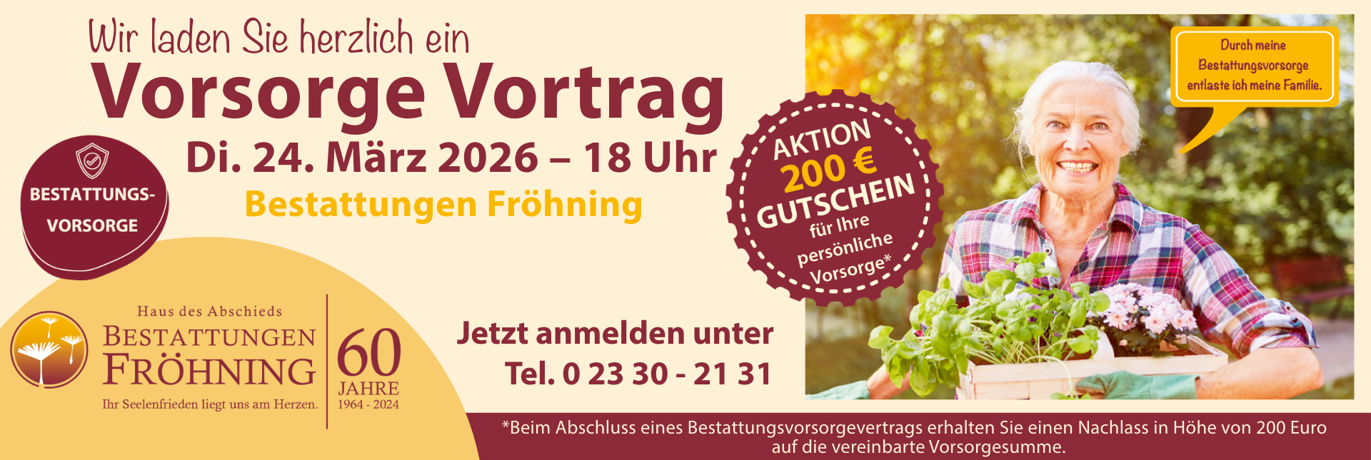 Als Experten im Bereich Bestattungsvorsorge zu Lebzeiten beraten wir Sie kostenlos und unverbindlich. Wir erklären Ihnen, was eine Vorsorgevereinbarung ist und welche Möglichkeiten der finanziellen Vorsorge es gibt.